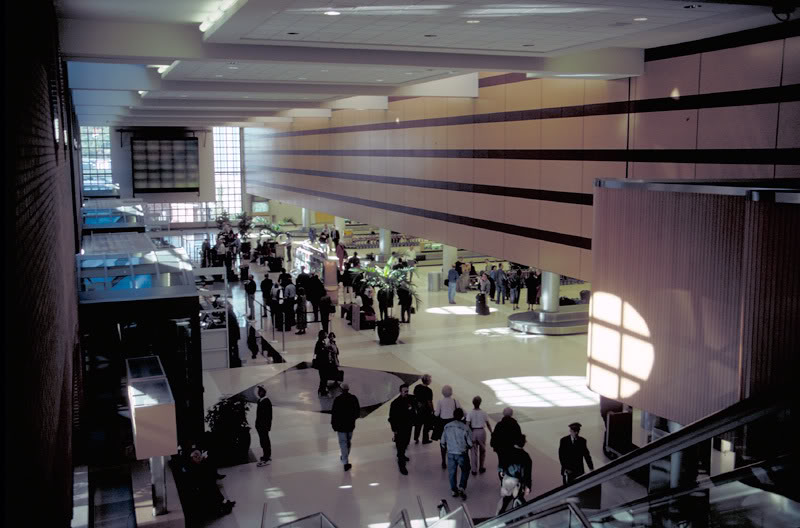 When the new terminal opened up, a large viewing area was made available on the second floor. It is essentially a huge glassed-in hall, and quite popular with air travelers and their relatives. If you can deal with photography through glass, this can be a pretty good spot around mid-day onward. Many of the following photos were taken there. We are fortunate that the glass at the newer airport terminals is not as heavily tinted as it is down south, and you can get pretty good results on film or sensor. Dark clothes and a rubber lens hood will help.