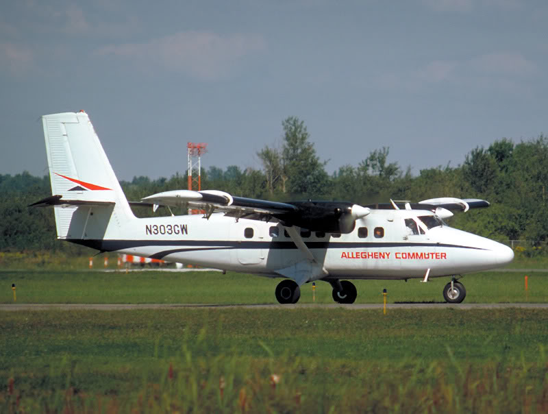 In years past, you could shoot aircraft taxying out for takeoff on runway #01 from the parking lot, such as this Allegheney Twin Otter below. Multiple fences have pretty well made this impossible today.