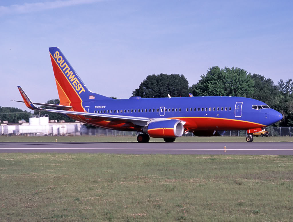 Boeing 737-7H4 N906WN, Southwest Flt. 1500, accelerates for takeoff on runway 06 at 0724 hrs.