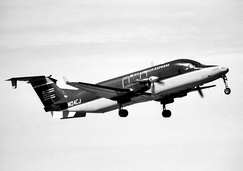 Pulling away smartly from rwy #35 N124CJ is a US Air Express Beech 1900D