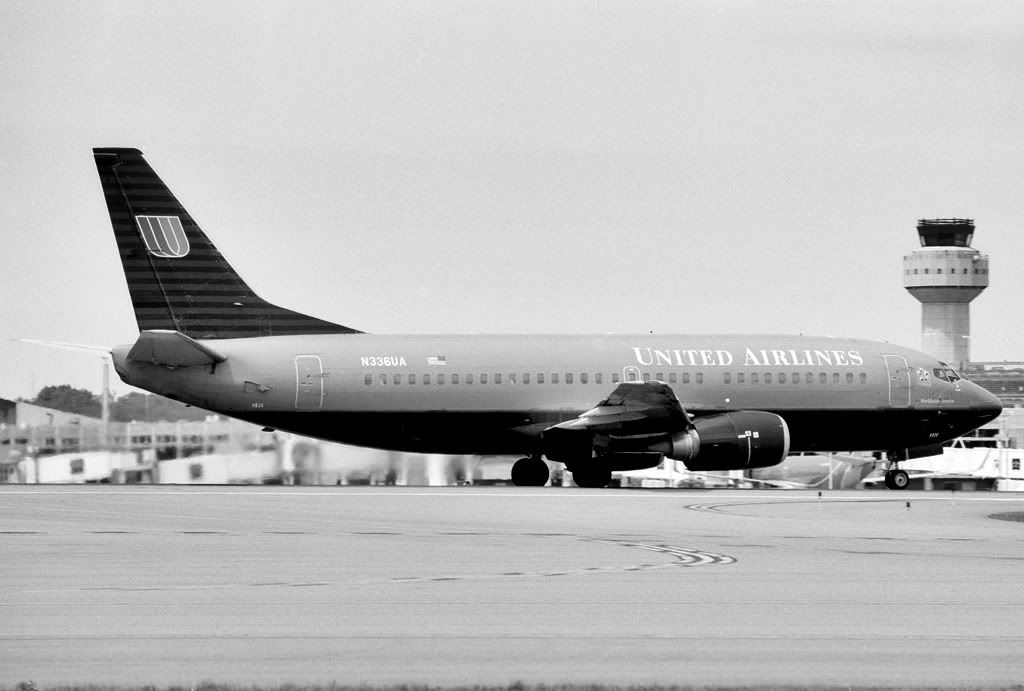 N336UA, a Boeing 737-322 was photographed on its takeoff roll.