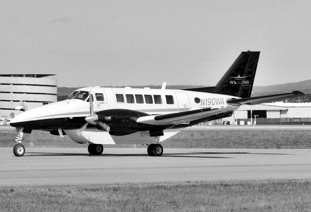 Beech 99 N199WA of Wiggins Airways taxying to the departure end of rwy #35 sporting a new scheme