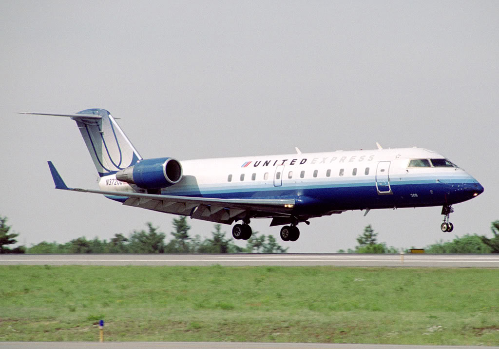 The newer United Airlines color scheme is eyecatching compared to the older one seen on the B737 above. N37208 is a Bombardier CL600-2B19