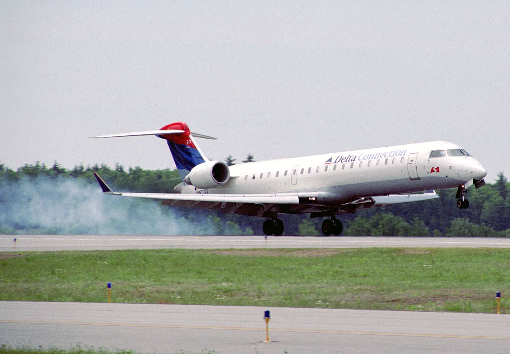 Delta Bombardier CL600-2C10 N717EV smokes it up upon touchdown