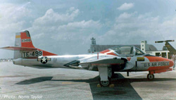![]() T-37B 56-3499 in dayglo trim. Photo: Norm Taylor. |
