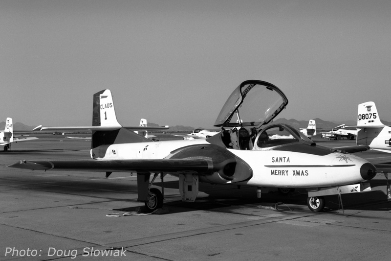 ![]() "Santa Claus", T37B 56-3590 of the 96FTW/82FTW at Williams AFB, AZ 13 December 1986. Photo by Doug Slowiak. |