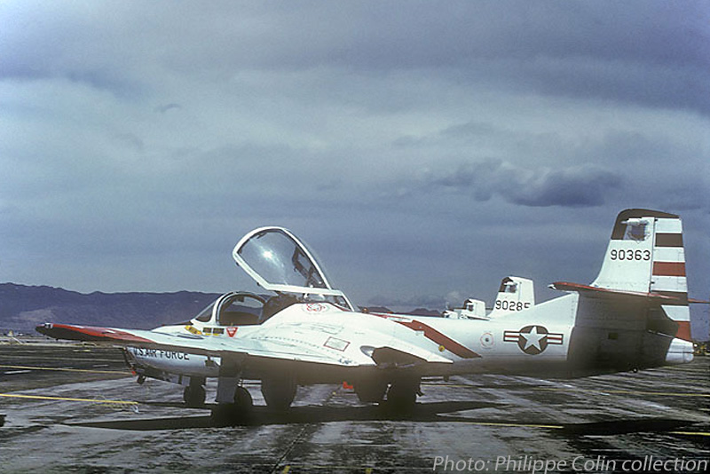 ![]() T-37B 59-0363 in colorful trim has an unknown wing insignia on its tail. Photo from the Philippe Colin collection. |
