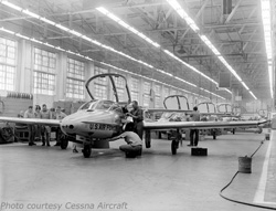 ![]() Cessna photo of T-37 production line. These are Fiscal Year 1959 aircraft. |