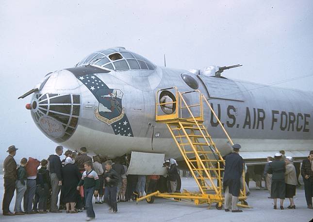 "Do-Do Bird" B-36H 50-1088 on display at the Westover AFB May 1956 Open House. Good details of the retractable 20mm turrents on this view |