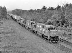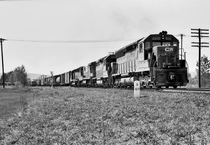 Early 1978 shot of an eastbound led by SD45 6212 at Williams Riding way, Westfield, MA., 107 miles from Boston.