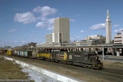Conrail's four U-36Bs team up in 2972, 2974, 2973, 2971 order to lead westbound NS-1 at Springfield Station, MA. on 7 January 1977.