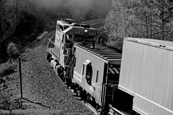 Four GE units led by C30-7A 6562 have an eastbound in hand running downhill near MP131 at 1030 hrs on 30 April 1993.